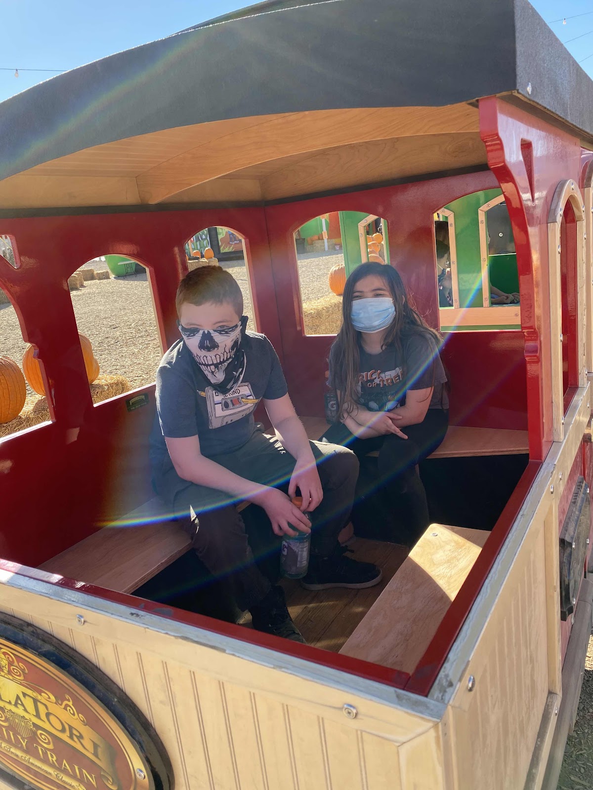 Pumpkin Patch... Can't forget the masks. At least Rory's is fitting for the season... hahaha